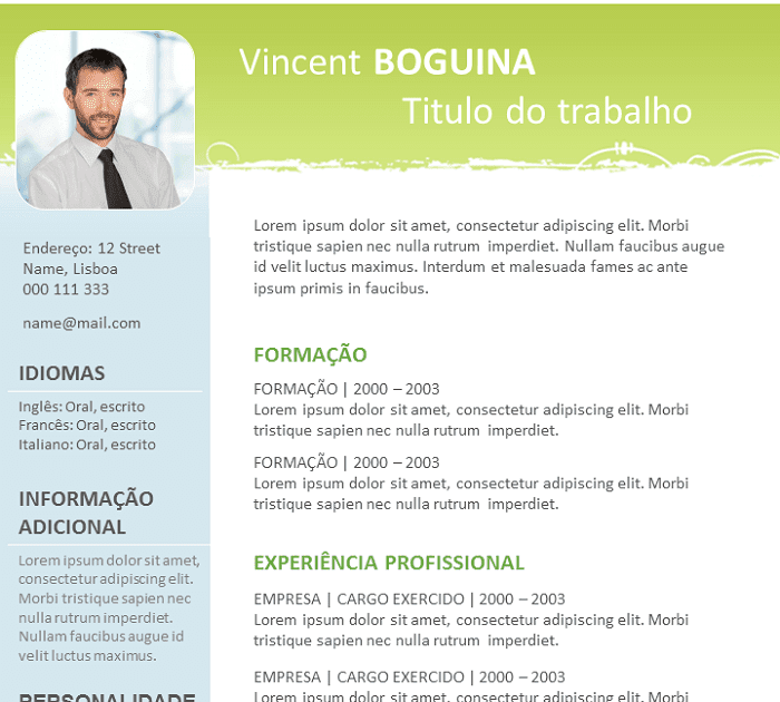 Este tipo de cv es el. Este curriculum vitae pronto para editar pode se converter em uma poderosa ferramenta que te ajudará a causar uma boa primeira. Este é um dos modelos de curriculum vitae mais indicados para jovens à procura de estágios ou candidatos ao primeiro emprego. Redigir um cv é uma etapa essencial e incontornável na procura ativa de emprego. Ferramentas para diferentes modelos de curriculum vitae.